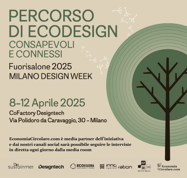 Un “percorso ecodesign” per capire l’importanza della progettazione consapevole, attraverso delle installazioni tematiche e workshop aperti ad aziende e designer professionisti. È l’evento “Consapevoli e connessi”, organizzato da SustainMe Hub ed Ecoesedra Sustainable Design, in collaborazione con Innovation System, Ez Lab e CoFactory Designtech, all’interno di Fuorisalone, durante la Milano Design Week. L’evento si terrà dall’8 al 12 aprile presso la sede di CoFactory in Via Polidoro da Caravaggio 30, Milano, nella zona Certosa. Ad approfondire le tematiche sarà EconomiaCircolare.com, media partner dell’iniziativa, che trasmetterà talk e interviste in diretta dalla media room di CoFactory.