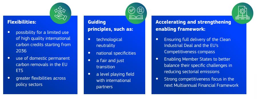 Principi guida per raggiungere l’0biettivo saranno “l’efficacia in termini di costi, la semplicità e l’efficienza”, oltre a “tenere conto delle specificità nazionali” e “garantire la neutralità tecnologica e una transizione equa e giusta per tutti”. La proposta, spiega la nota dell’esecutivo, “definisce un modo diverso di conseguire l’obiettivo del 2040 rispetto al passato”. Il cardine di questo nuovo approccio sono “le flessibilità”: “Tra queste figurano un ruolo limitato per i crediti internazionali di alta qualità a partire dal 2036, l’uso di assorbimenti permanenti nazionali nel sistema di scambio di quote di emissione dell’UE (EU ETS) e una maggiore flessibilità in tutti i settori per contribuire al conseguimento degli obiettivi in modo efficiente sotto il profilo dei costi e socialmente equo”. L’esecutivo Ue chiarisce:” Concretamente, ciò potrebbe dare a uno Stato membro la possibilità di compensare il settore in difficoltà dell’uso del suolo con un risultato eccessivo in termini di riduzione delle emissioni sui rifiuti e sui trasporti”.