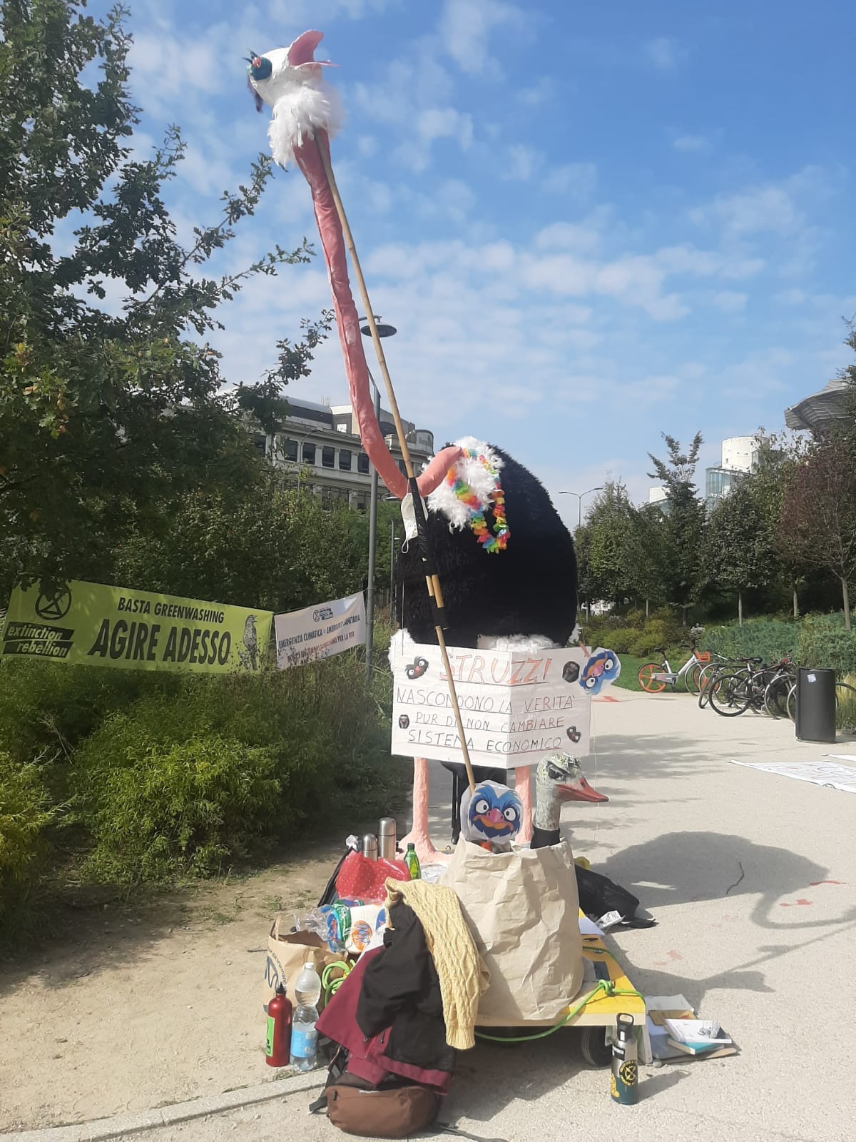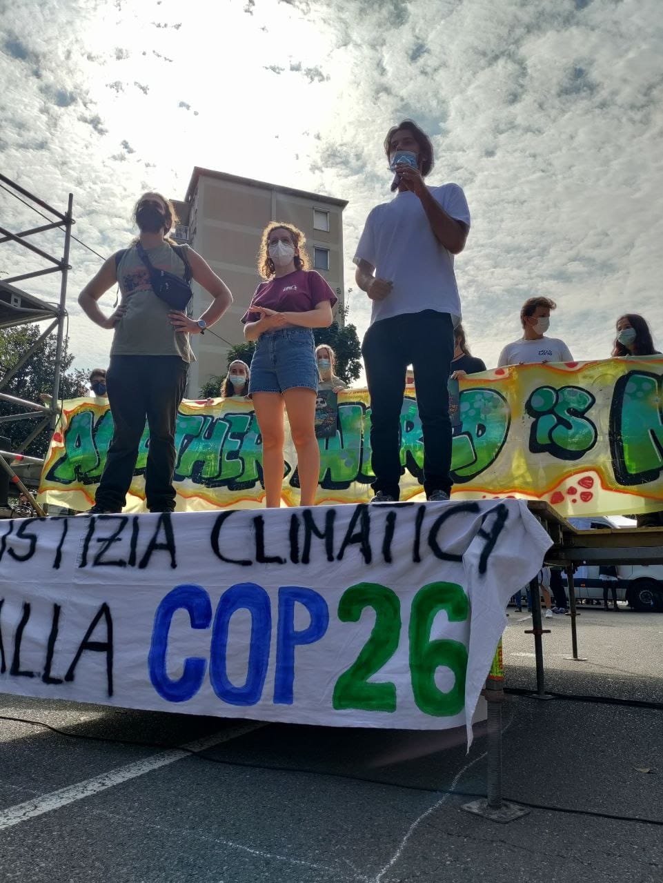 Nella seconda invece sono confluiti altri gruppi di Fridays locali, Adl Cobas, A Sud, Extinction Rebellion, Movimento NoTav, e molti centri e spazi sociali che si sono riuniti in un “Climate Camp” a Milano tenendo dibattiti e discussioni sulla giustizia climatica. La piattaforma si è espressa nello spazio politico Rise UP 4 Climate Justice, che nei giorni della preCop ha portato avanti azioni e blocchi nelle strade, di fronte alle banche e alle istituzioni.
