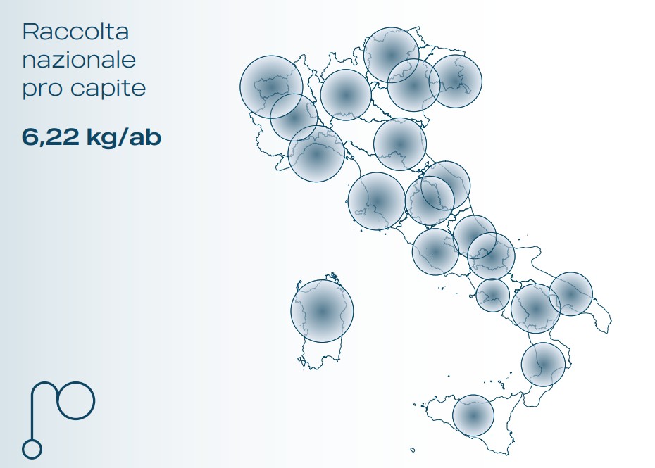 La raccolta pro capite è a 6,22 kg/ab, a fronte dei 12 dell’obiettivo UE.