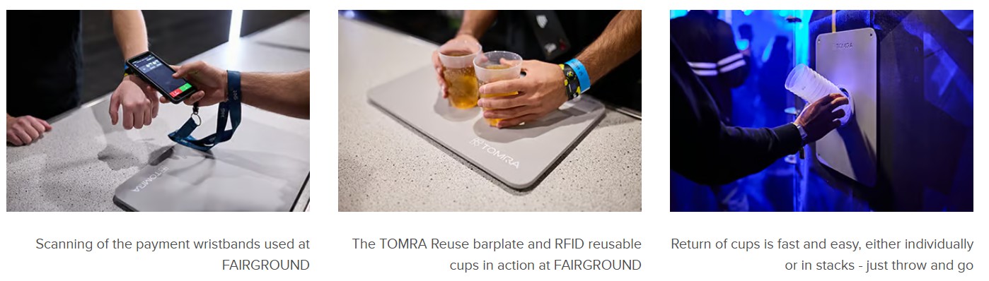 TOMRA Reuse è la divisione di TOMRA dedicata a creare sistemi e infrastrutture per imballaggi riutilizzabili, pensati per città, eventi e grandi luoghi di aggregazione. Il suo approccio utilizza la tecnologia di raccolta automatizzata (derivata dall’esperienza di TOMRA nelle macchine reverse vending) per permettere ai consumatori di restituire contenitori riutilizzabili (come tazze o bicchieri) in punti di raccolta dedicati: questi sistemi identificano, raccolgono e avviano al riuso gli imballaggi, riducendo i rifiuti e ottimizzando l’intero ciclo di vita del packaging.